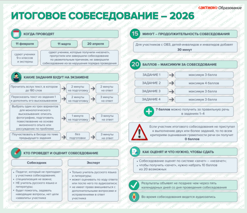 В разделе ГИА — Итоговое собеседование. 9 класс размещены Рекомендации по организации и проведению итогового собеседования по русскому языку в 2026 году (Приложение к письму Рособрнадзора от 25.11.2025 № 04-393).